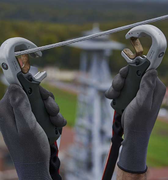 i revolucionari de seguretat que evita el risc de desenganxament simultani durant la progressió vertical o horitzontal en activitats d'oci actiu en altures.